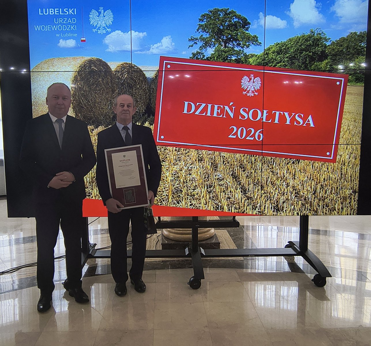 Miło nam poinformować, że w dniu 17 marca 2026 roku w Lubelskim Urzędzie Wojewódzkim w Lublinie Pan Zbigniew Szymański – Sołtys z Nowego Załucza – został uhonorowany Dyplomem Wojewody Lubelskiego. Jest to wyróżnienie za zaangażowanie, odpowiedzialność oraz codzienną pracę na rzecz mieszkańców.