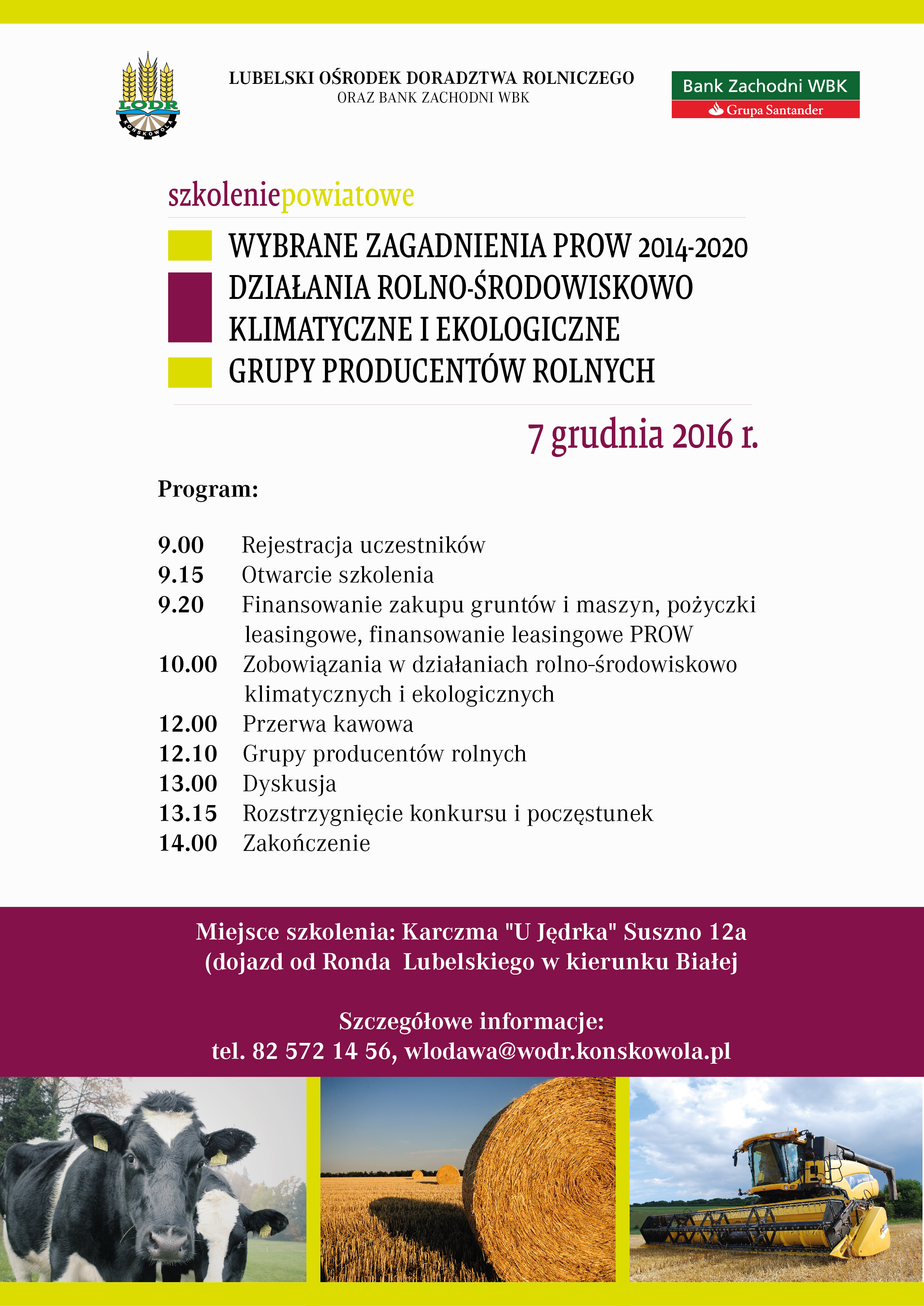 Szkolenie organizowane przez Zespół Doradztwa Rolniczego we Włodawie w dniu 7 grudnia 2016 roku w „Karczmie u Jędrka”.