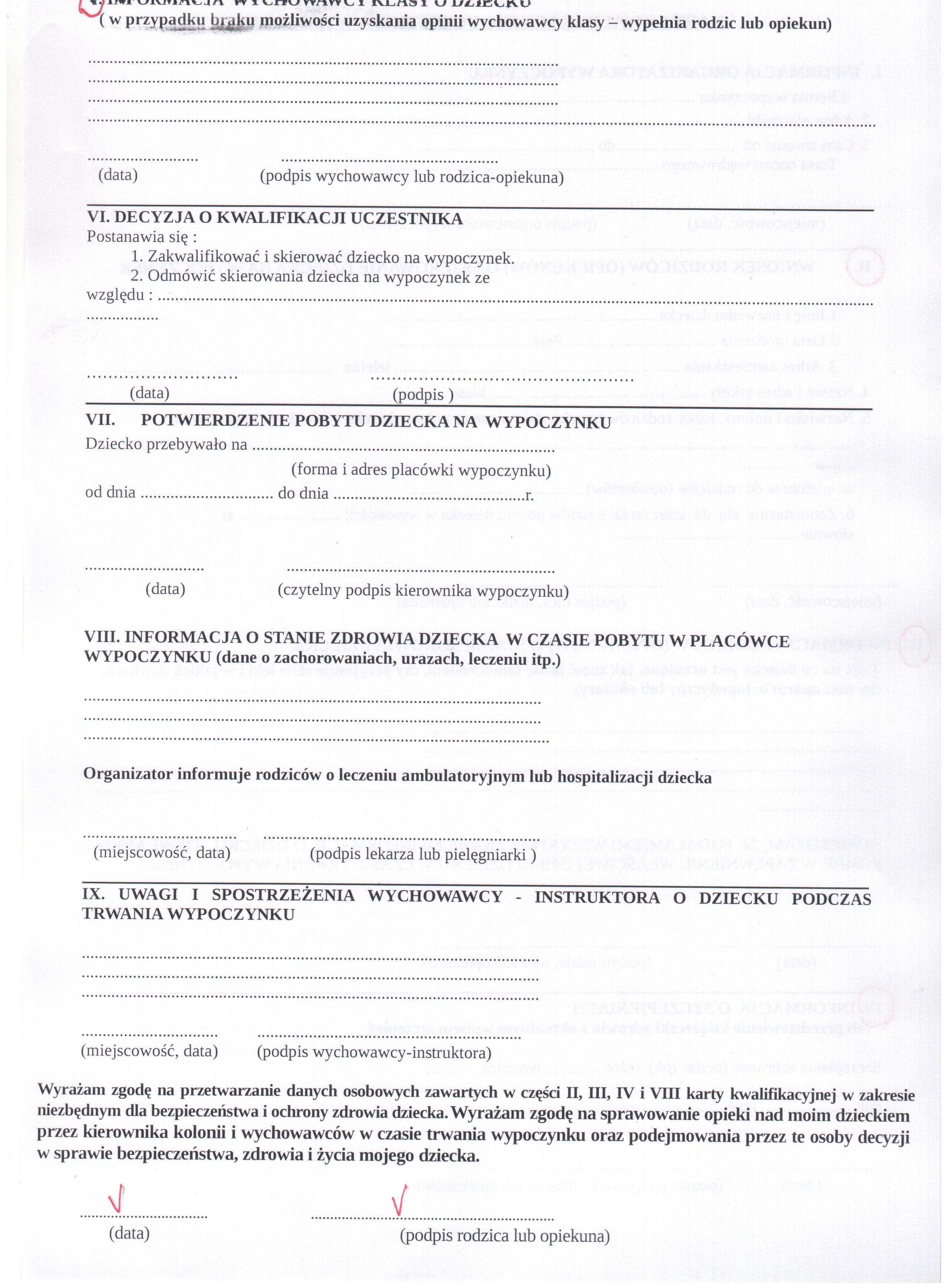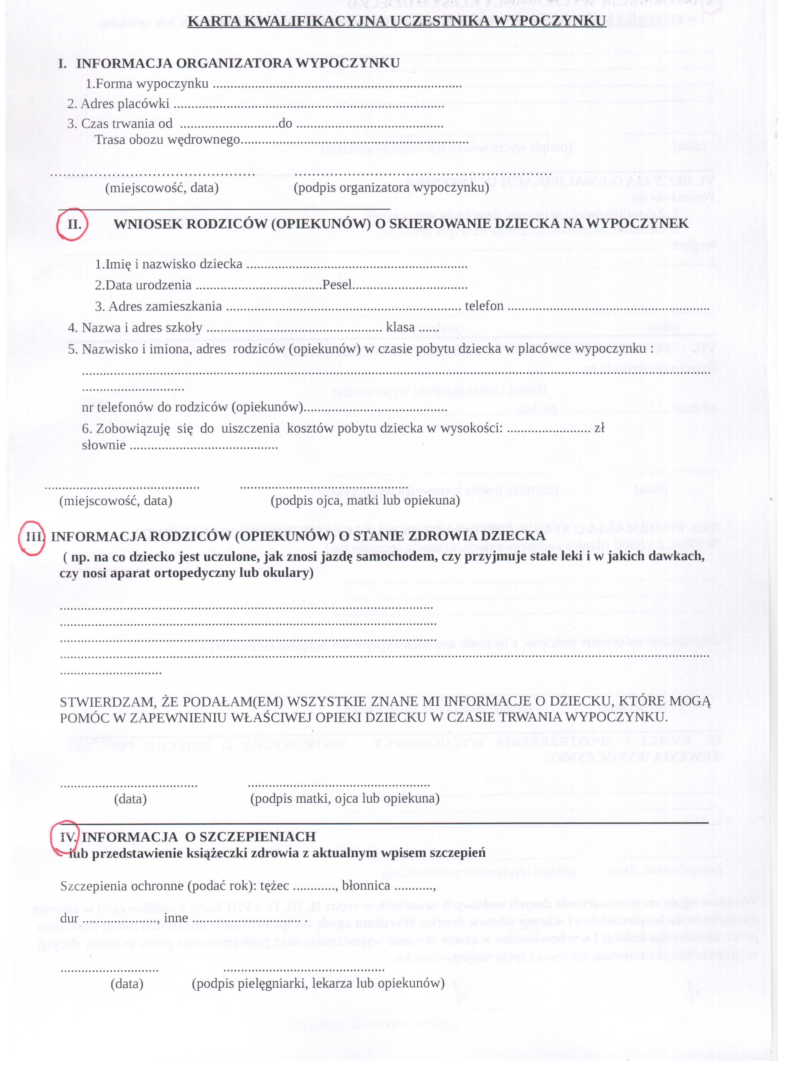KARTA KWALIFIKACYJNA UCZESTNIKA WYPOCZYNKU
