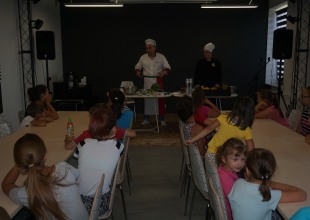 We wtorek 5 lipca br. odbyło się kolejne spotkanie „Wakacyjnej przygody w bibliotece” w której gościliśmy kucharzy „Hotelu Drob” z Urszulina. Obok podstawowych zasad zdrowego żywienia i przygotowania wartościowych posiłków pokazali uczestnikom warsztatów jak można przyrządzić szybko i smacznie wakacyjną ucztę dla podniebienia. W menu dominowały zdrowe owoce z których przygotowano pyszną owocową sałatkę.