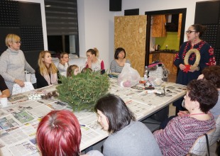 Każdy miał okazje spróbować swoich umiejętności w tworzeniu świątecznych ozdób. Paniom nie zabrakło pomysłów i zapału do pracy. Powstały piękne i różnorodne wianki, które powodowały zachwyt i uśmiech na twarzy uczestniczek. Wszyscy uczestnicy warsztatów wrócili do domu z własnoręcznie wykonaną ozdobą.