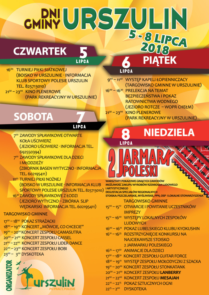 W tym roku w dniach 5-8 lipca odbędzie się coroczne święto mieszkańców Gminy Urszulin.