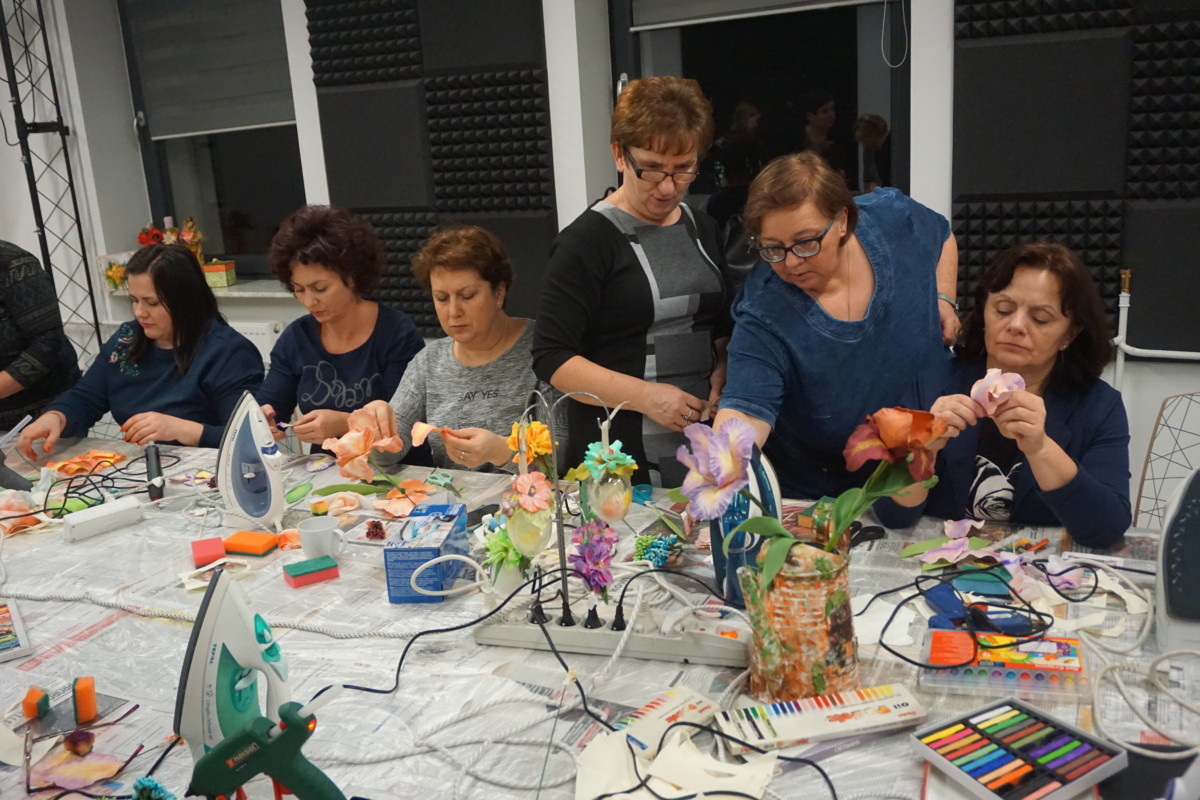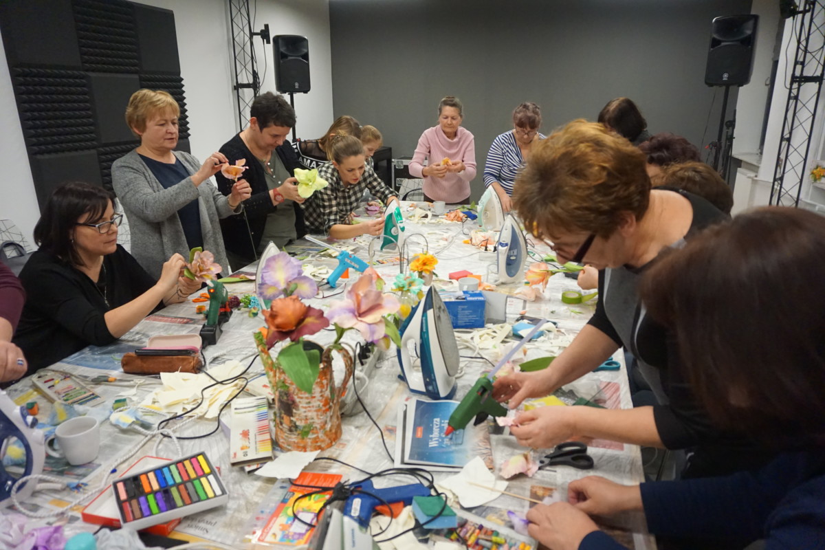 Na spotkaniu uczestnicy zapoznali z innowacyjnym materiałem jakim jest pianka foamiran. Poznali jej możliwości, techniki modelowania i samodzielnie wykonali kwiat „irys” oraz jajko „z czubkiem”. Wszystko to oczywiście pod fachowym okiem prowadzącej spotkanie pani Małgorzaty Leszczyńskiej.