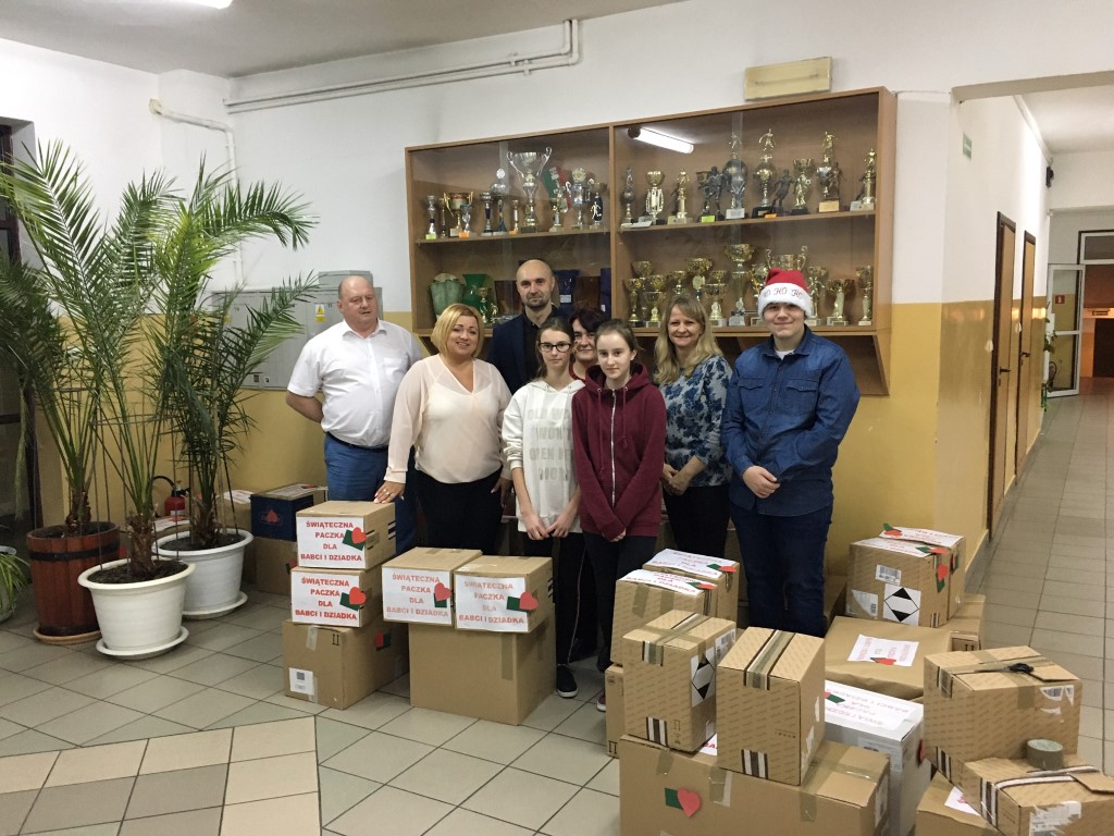 Wolontariusze wraz z nauczycielkami i Dyrektorem zrobili paczki dla 11 potrzebujących z gminy Urszulin i dwóch z Garbatówki (gmina Cyców). Gdyby nie wielkie serce i silne ręce Wójta Gminy Urszulin Tomasza Antoniuka wolontariusze nie zdołaliby zapakować 40 dużych i ciężkich pudeł. Wójt wiedział, że jest to ciężka praca, ale mimo to podobnie jak w ubiegłym roku chętnie przyszedł do szkoły z torbą słodyczy i pomógł wolontariuszom.