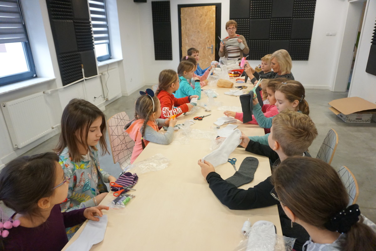 Pierwszy dzień rozpoczął się warsztatami artystycznymi, podczas których uczestnicy przy użyciu swoich zdolności plastycznych z wykorzystaniem skarpetki, włóczki i innych zdobień stworzyły przepiękne krasnale. Efekt pracy był zdumiewający, albowiem pod okiem prowadzącej warsztaty pani Urszuli Ulman dzieci wykazały się kreatywnymi pomysłami.