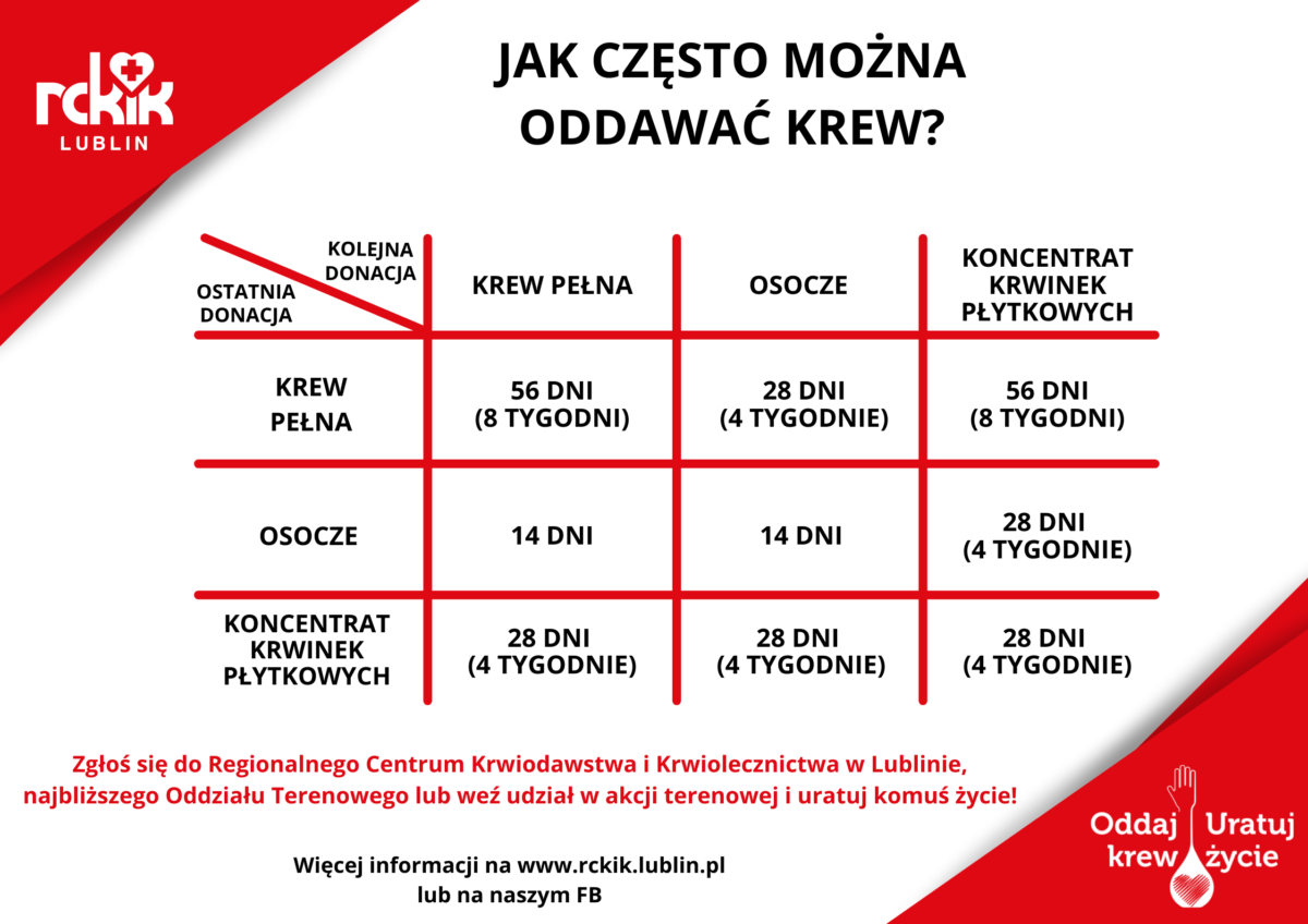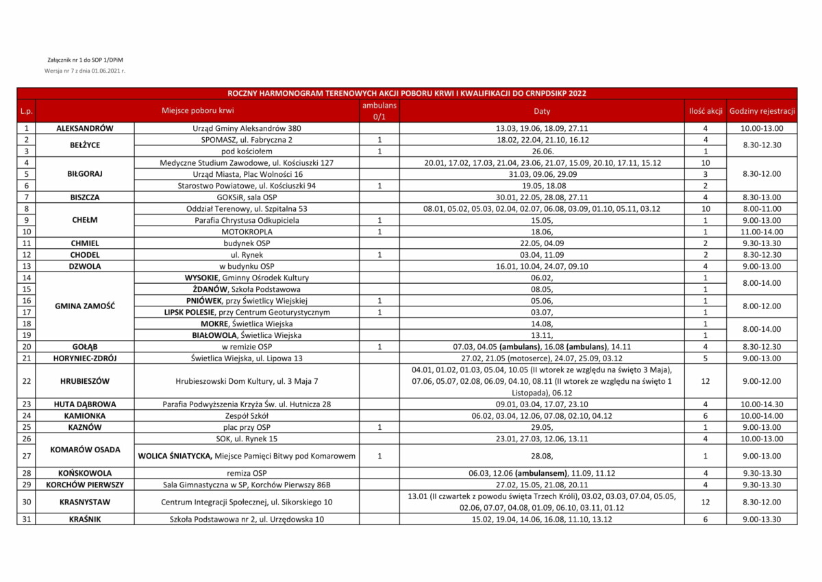 W imieniu Regionalnego Centrum Krwiodawstwa i Krwiolecznictwa w Lublinie przedstawiamy Państwu materiały promocyjno-edukacyjne o idei Honorowego Krwiodawstwa a także harmonogram stałych akcji terenowego poboru krwi na terenie województwa lubelskiego 2022 roku.