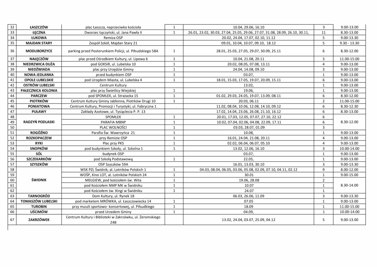 W Urszulinie, niestety, ambulans z RCKiK nie pojawi się w bieżącym roku.