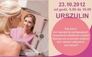 Badania odbędą się 23.10.2012 r. w mammobusie na parkingu przed Urzędem Gminy Urszulin.