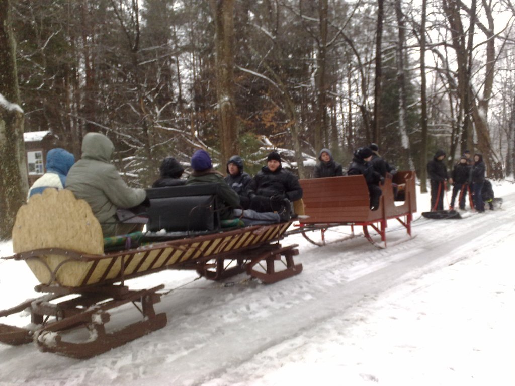 Zimą organizujemy kuligi saniami dla 14 osób po trasach Poleskiego Parku Narodowego.