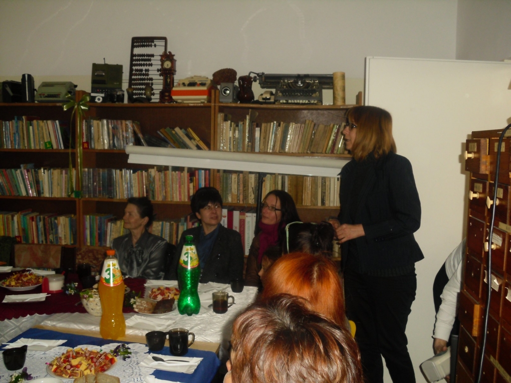 Czytelnicy pytali m. in. o tajniki warsztatu pracy pisarki. Pani Angelika Kuźniak powiedziała, że gromadzi bardzo dużo materiałów, odwiedza archiwa, przeprowadza wywiady, wielokrotnie czyta swoje rękopisy, skrupulatnie dokonuje wyboru, niewiele pozostawia ze zgromadzonego materiału w przygotowanej książce.